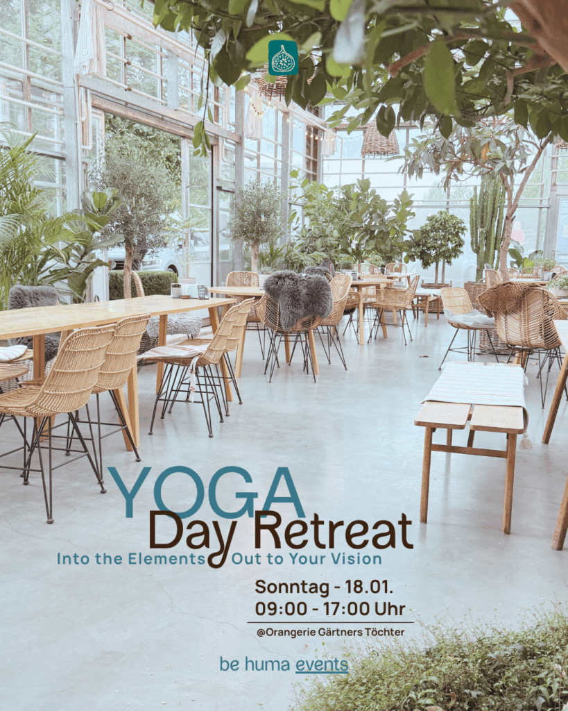 Deine Auszeit für Klarheit, Kreativität und Verbundenheit mitten im Grünen: INTO THE ELEMENTS & OUT TO YOUR VISION am 18.01.2026 in der Orangerie bei Gärtners Töchter. Ein Day-Retreat, das dich durch die Elemente fließen lässt, in der Stille zentriert und sanft auf dein neues Jahr ausrichtet. Was erwartet dich?Eine wohltuende Auszeit, die dich erdet, nährt und mit neuer Energie füllt.
